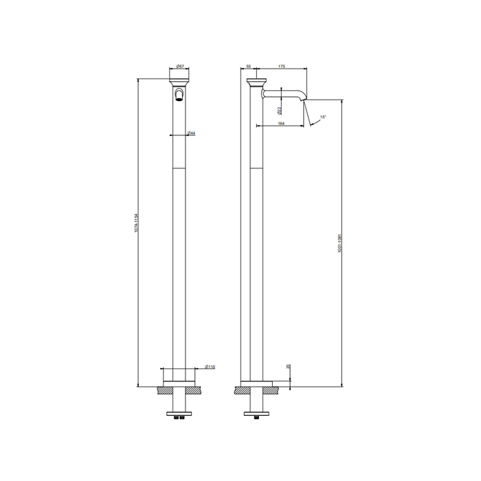 Смеситель Gessi Origini 66095#720 для раковины напольный, никель глянец pvd