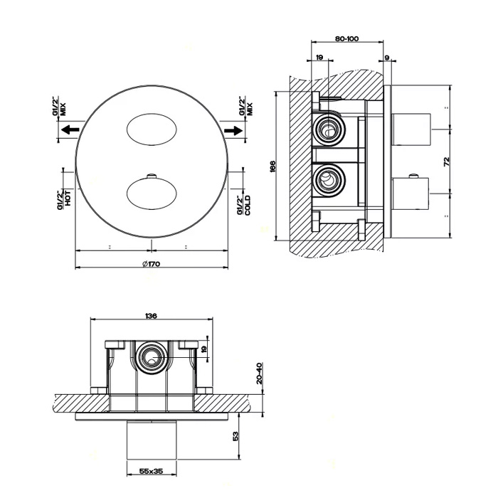 Смеситель Gessi Ovale 23234#031 для душа термостат, хром