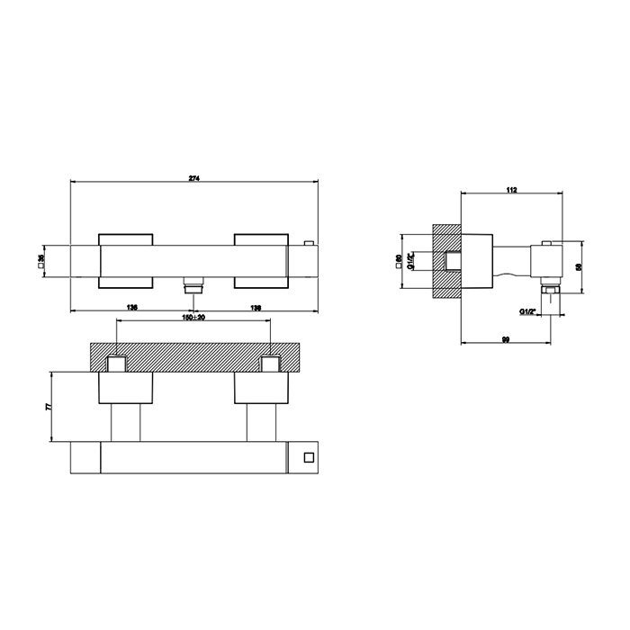 Смеситель Gessi Rettangolo K 19431#299 для ванны термостат, черный матовый