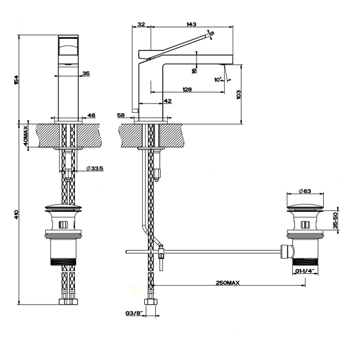 Смеситель Gessi Rettangolo K 53001#031 для раковины с донным клапаном, хром