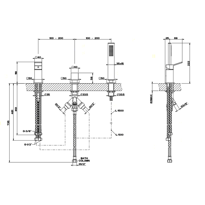 Смеситель Gessi Rettangolo K 53043#299 для ванны с душем, черный матовый