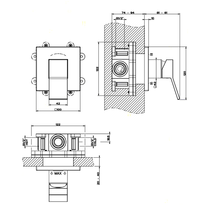 Смеситель Gessi Rettangolo K 53109#299 для душа, черный матовый