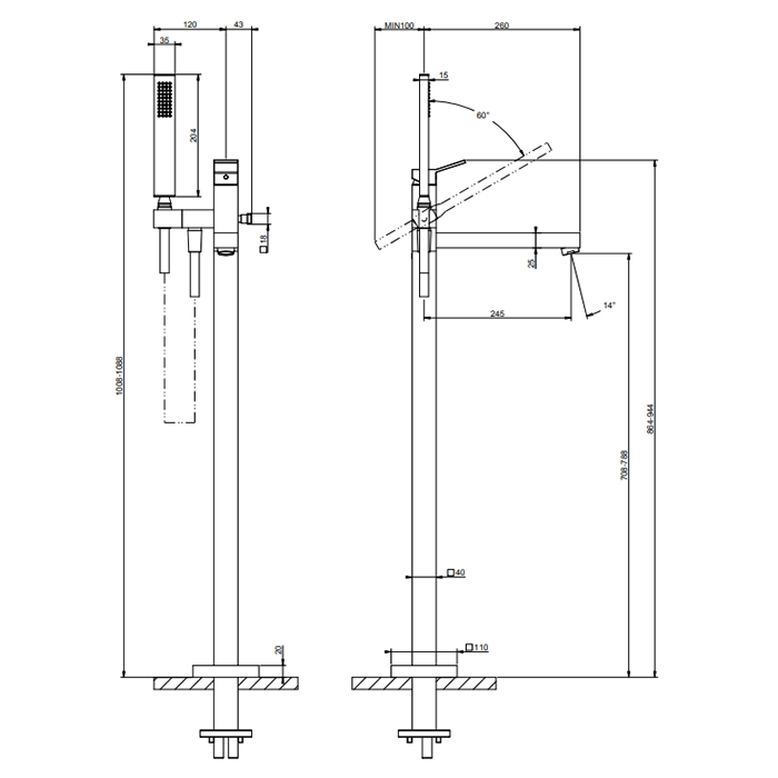 Фото Смеситель Gessi Habito 70628#707 напольный для ванны, черный хром браш pvd