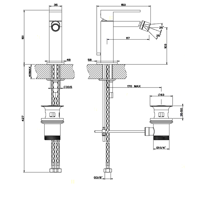 Смеситель Gessi Rettangolo 20007#031 для биде с донным клапаном, хром