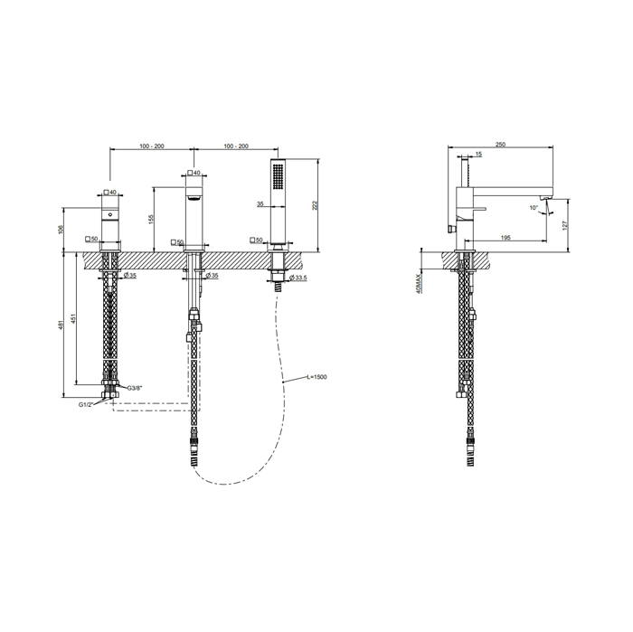 Смеситель Gessi Rettangolo 20037#299 для ванны с душем, черный матовый