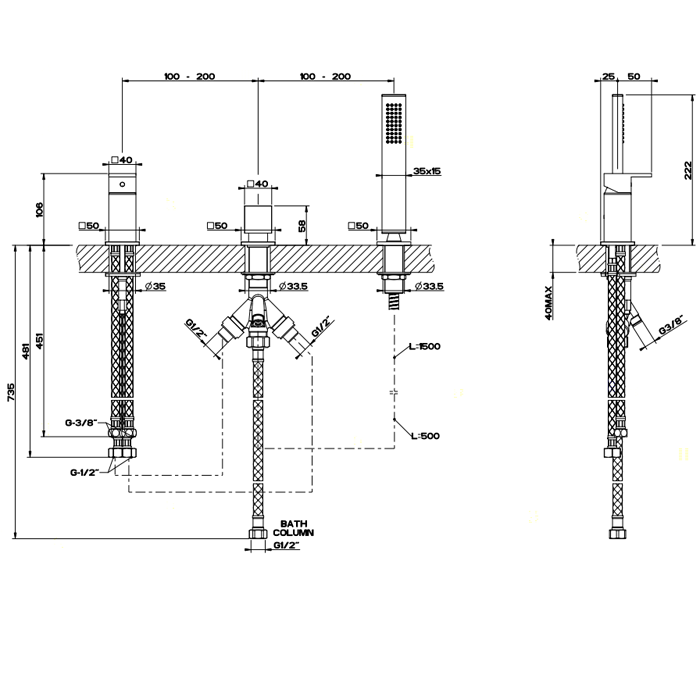 Смеситель Gessi Rettangolo 20043#031 для ванны с душем, хром
