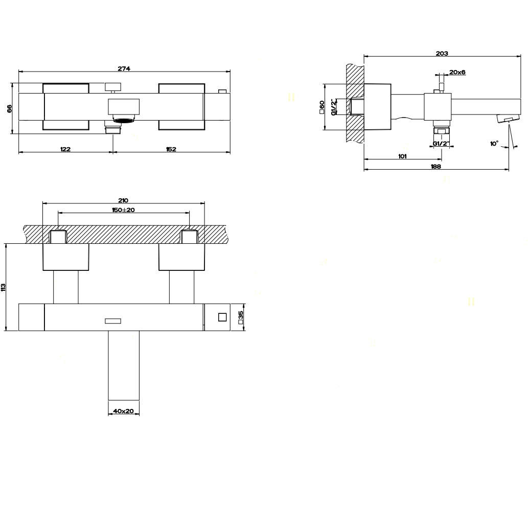Смеситель Gessi Rettangolo 20111#031 для ванны с душем термостат, хром