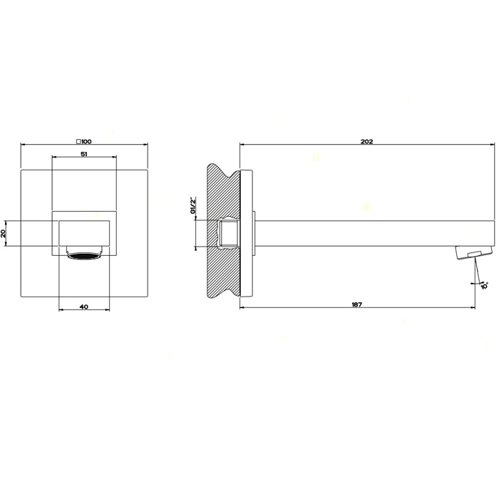 Излив Gessi Rettangolo 20120#031 для ванны настенный хром