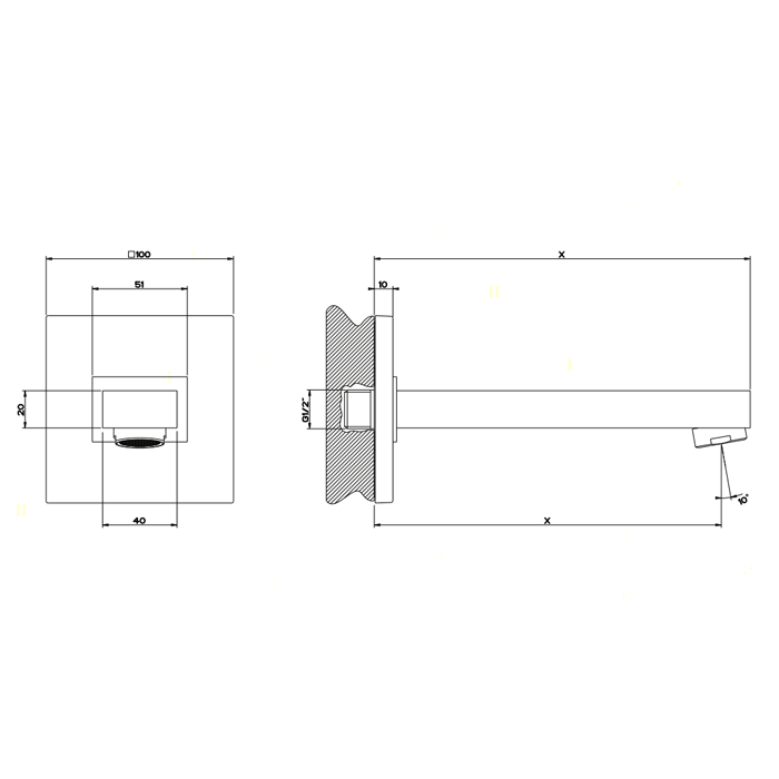Излив Gessi Rettangolo 20121#031 для ванны настенный хром
