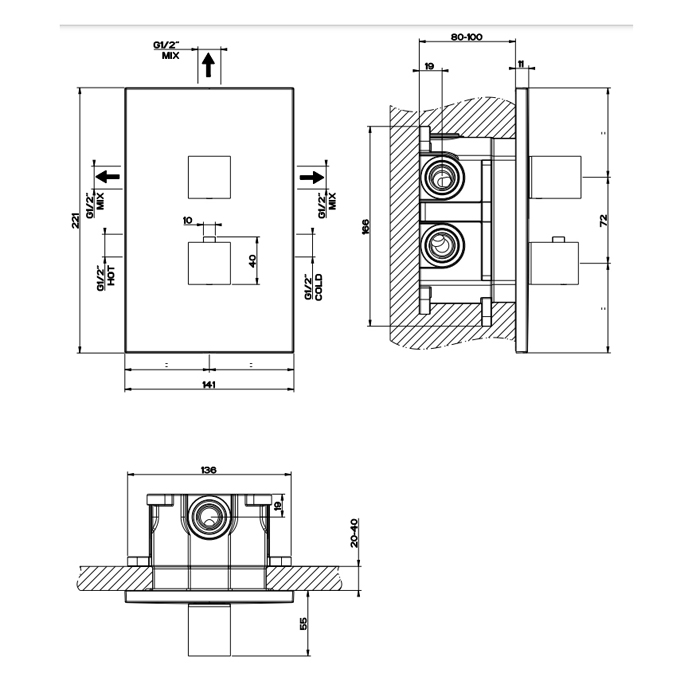 Смеситель Gessi Rettangolo 20190#299 для душа термостат, черный матовый