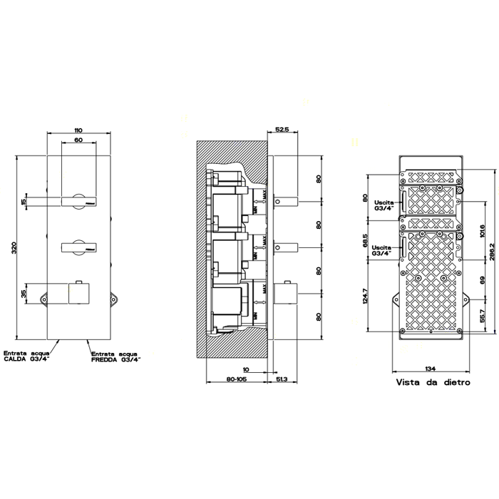 Смеситель Gessi Rettangolo 43024#031 для душа термостат, хром