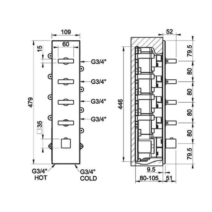 Смеситель Gessi Rettangolo 43028#299 для душа термостат, черный матовый