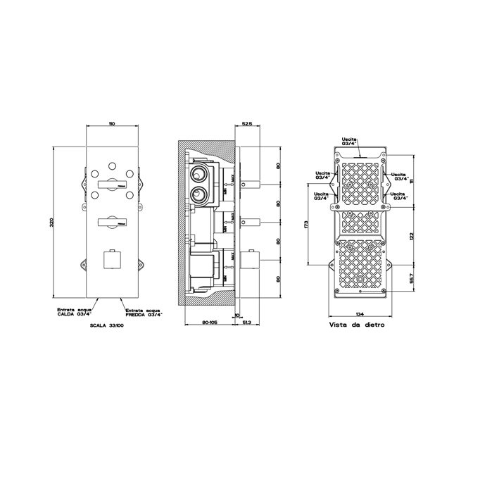 Смеситель Gessi Rettangolo 43032#299 для душа термостат, черный матовый