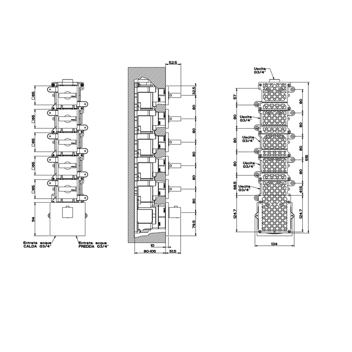Смеситель Gessi Rettangolo 43220#299 для душа термостат, черный матовый
