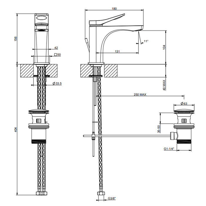Смеситель Gessi Rilievo 59005#031 для раковины с донным клапаном, хром