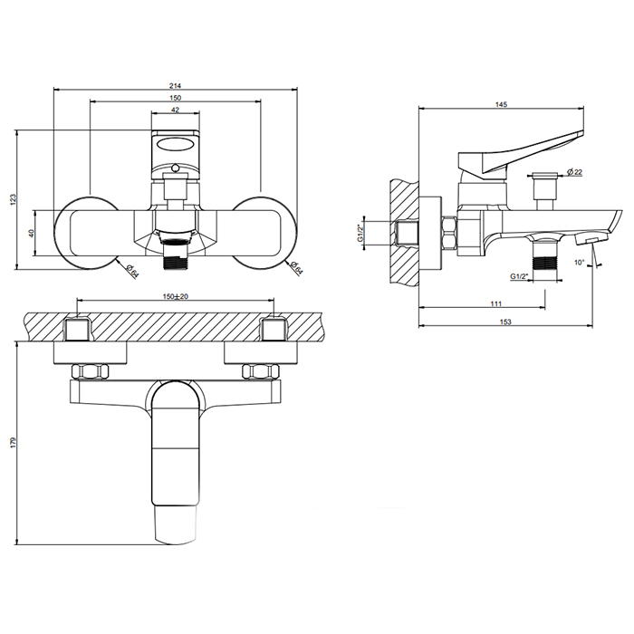 Смеситель Gessi Rilievo 59013#299 для ванны с душем, черный матовый