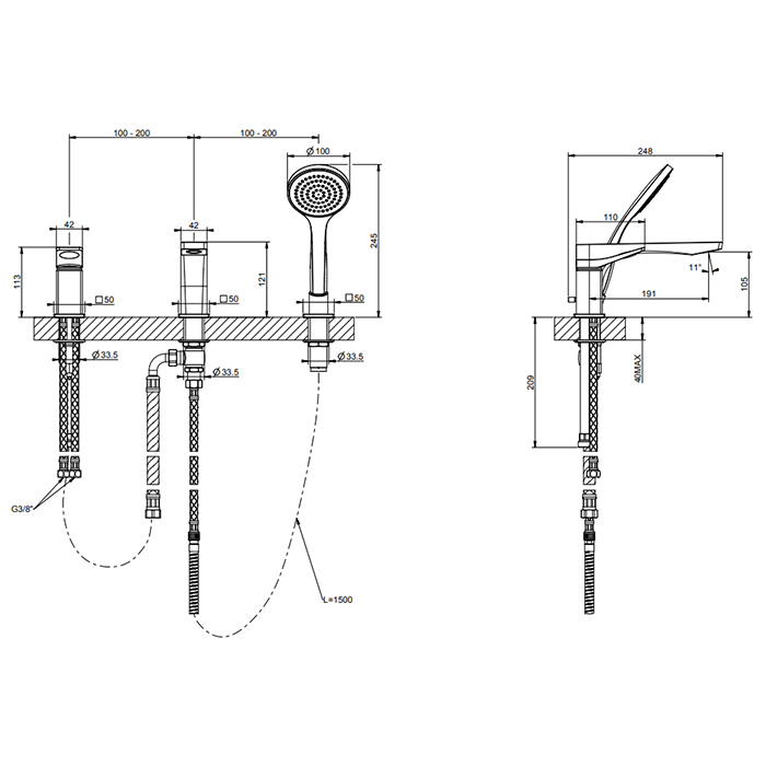 Смеситель Gessi Rilievo 59037#299 на борт ванны, черный матовый