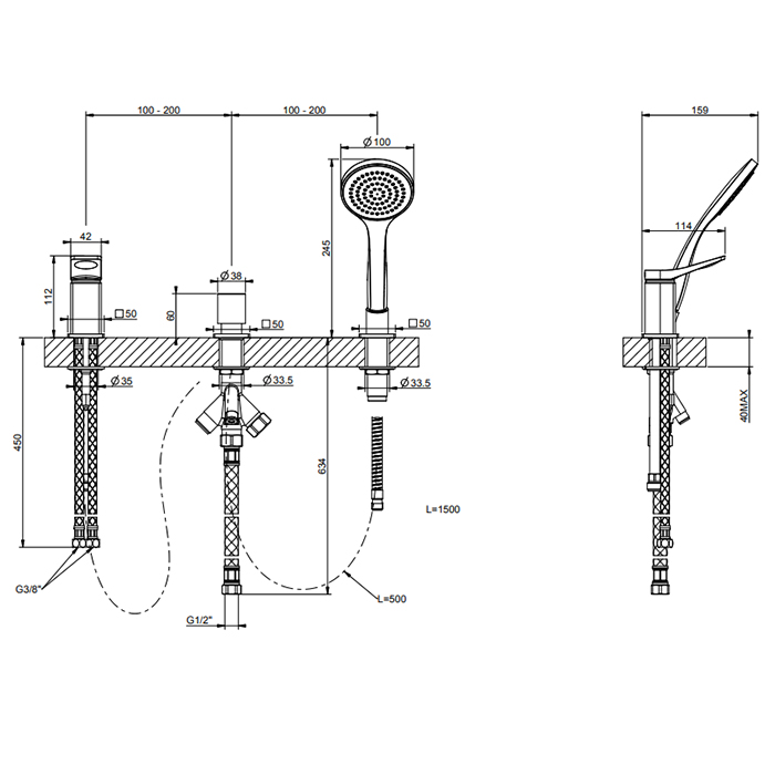 Смеситель Gessi Rilievo 59043#299 на борт ванны, черный матовый