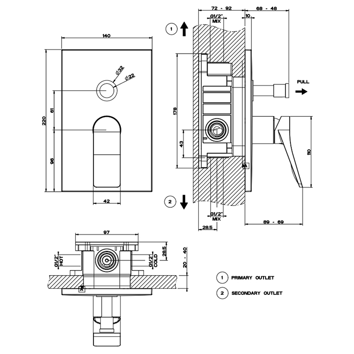 Смеситель Gessi Rilievo 59079#299 для душа, черный матовый