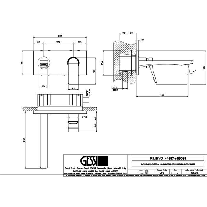 Смеситель Gessi Rilievo 59089#031 для раковины с изливом, хром