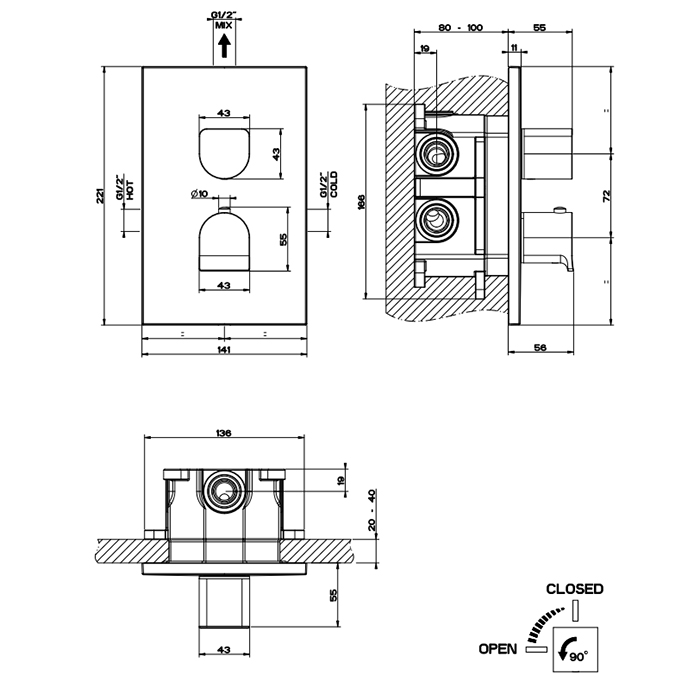 Смеситель Gessi Rilievo 59132#299 для душа термостат, черный матовый