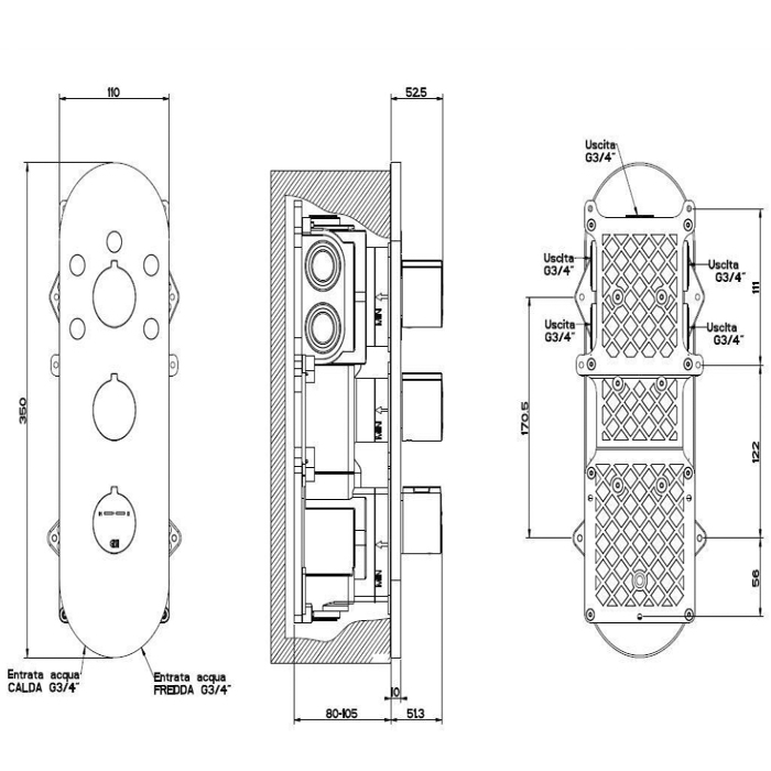 Смеситель Gessi Tondo 43072#031 для душа термостат, хром