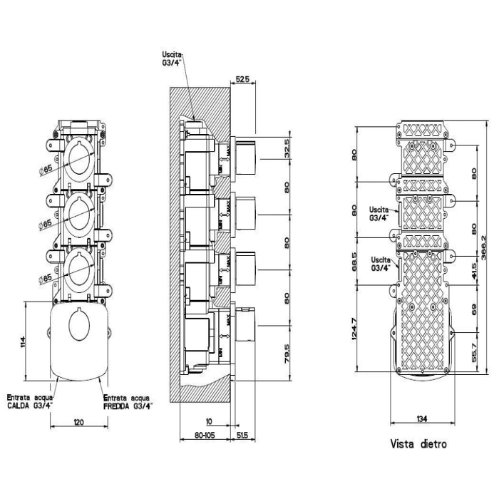 Смеситель Gessi Tondo 43236#031 для душа термостат, хром