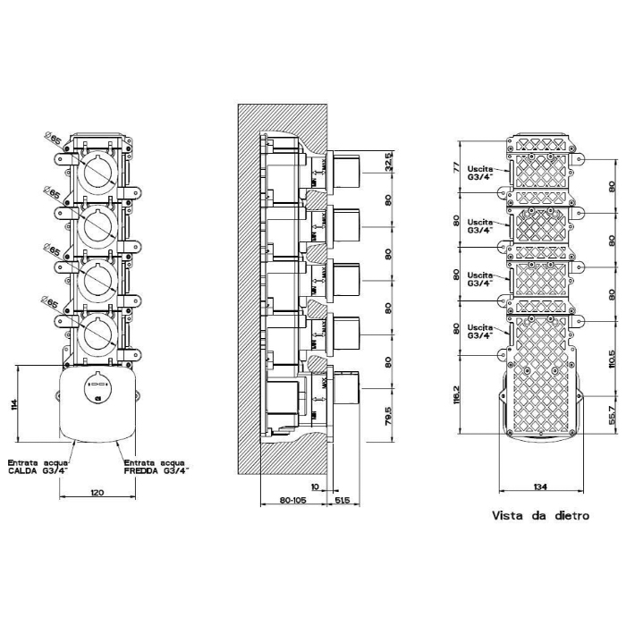 Смеситель Gessi Tondo 43238#031 для душа термостат, хром
