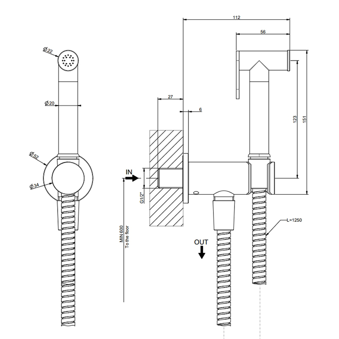 Гигиенический душ Gessi Tradizione 14331#246, золото глянец pvd