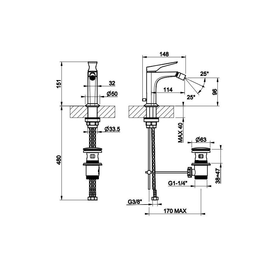 Смеситель Gessi Ventaglio 72007#031 для биде с донным клапаном, хром