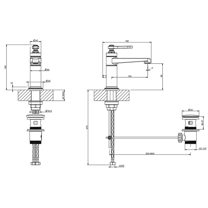 Смеситель Gessi Venti20 65001#246 для раковины с донным клапаном, золото глянец pvd