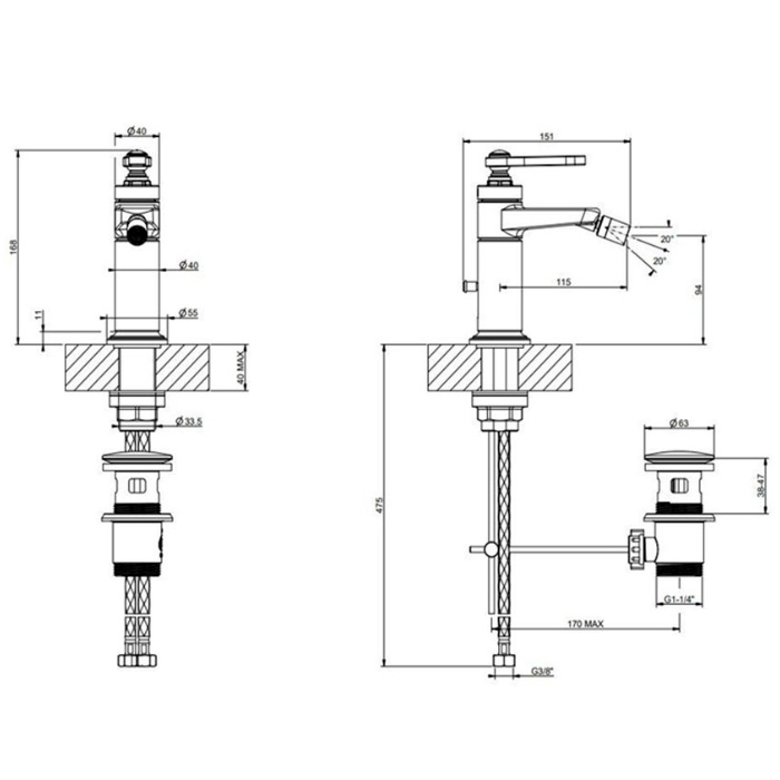 Смеситель Gessi Venti20 65007#720 для биде с донным клапаном, никель глянец pvd
