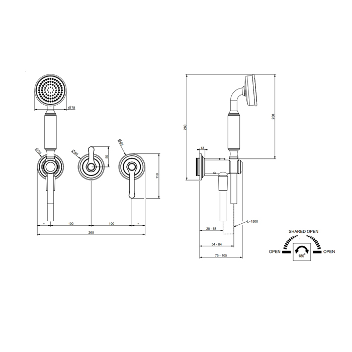 Смеситель Gessi Venti20 65036#031 для ванны с душем, хром