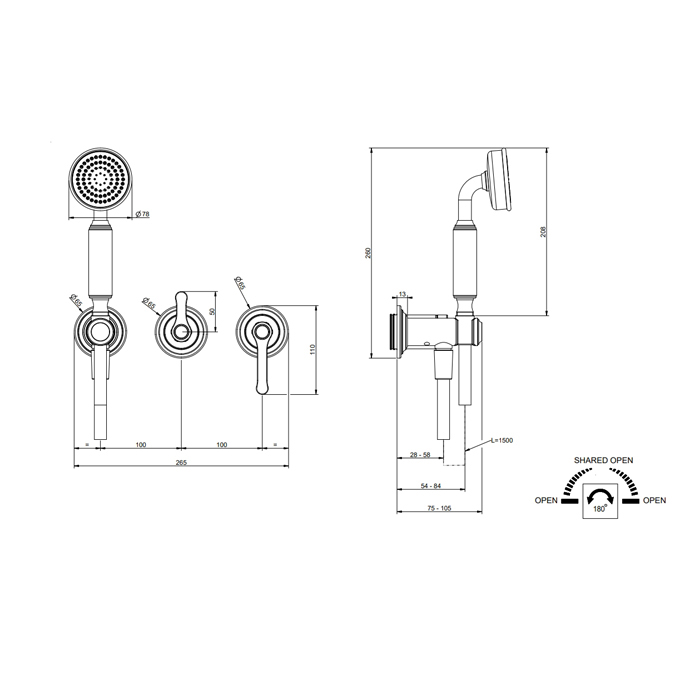 Смеситель Gessi Venti20 65036#713 для душа с переключателем на 2 потока, бронза