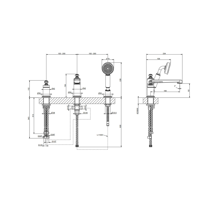 Смеситель Gessi Venti20 65037#031 на борт ванны, хром