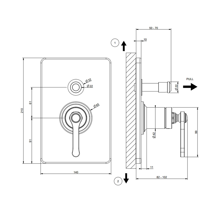Смеситель Gessi Venti20 65079#708 для душа с переключателем на 2 потока, медь браш pvd