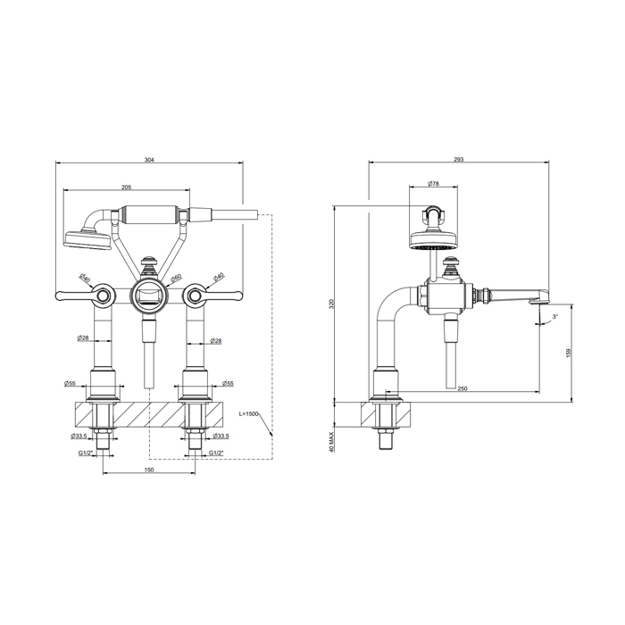 Смеситель Gessi Venti20 65115#713 на борт ванны, бронза
