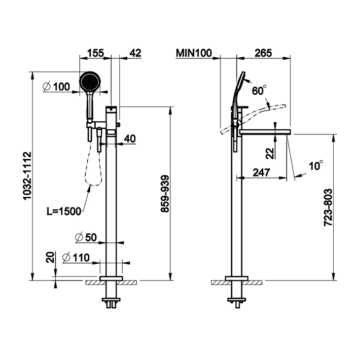 Смеситель Gessi Via manzoni 24982#149 для ванны с душем напольный, никель браш