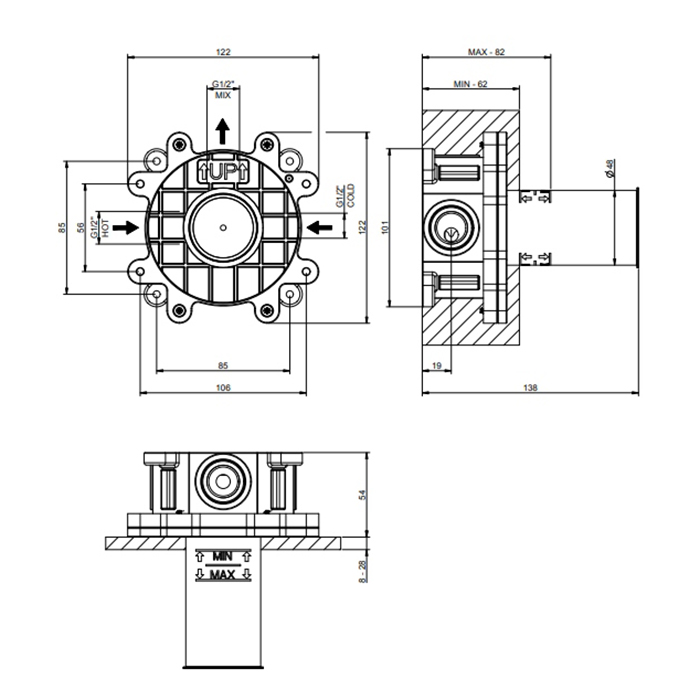 Скрытая часть смесителя Gessi Via manzoni 38315#031, хром