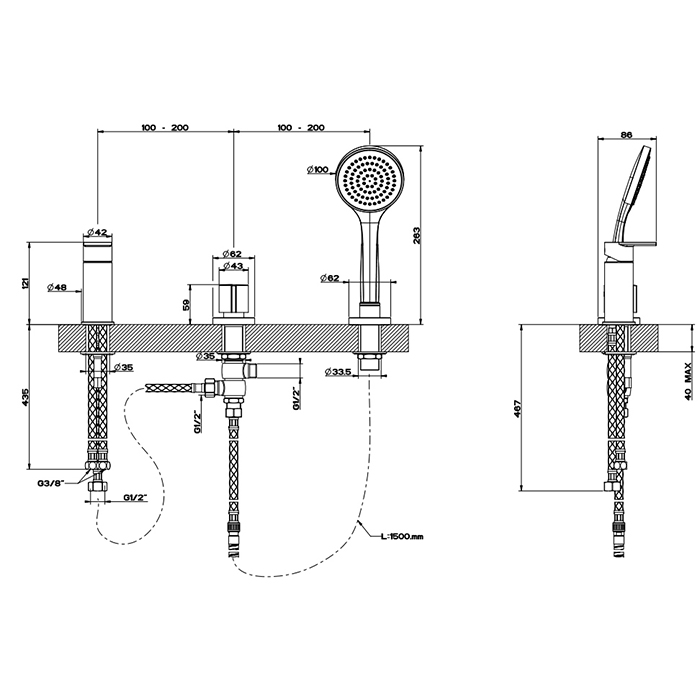 Смеситель Gessi Via manzoni 38643#299 для ванны, черный матовый