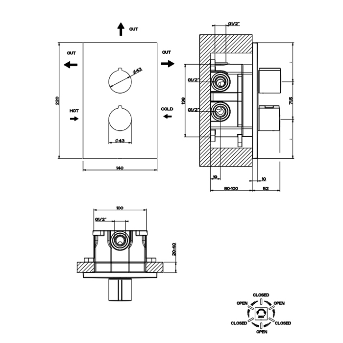 Смеситель Gessi Via manzoni 38796#149 для душа термостат с переключателем на 2 потока, никель браш