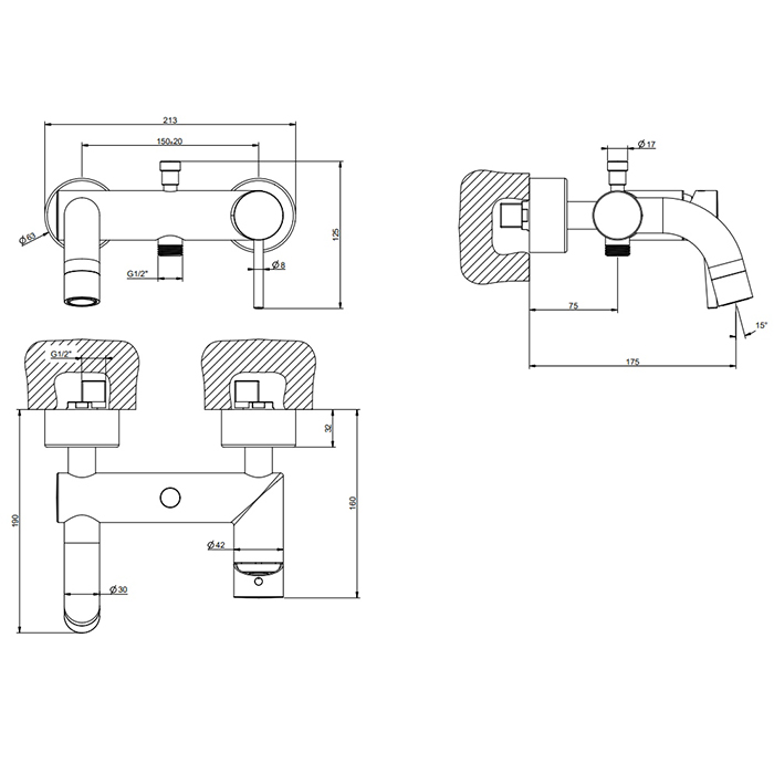 Смеситель Gessi Via tortona 18613#031 для ванны с душем, хром