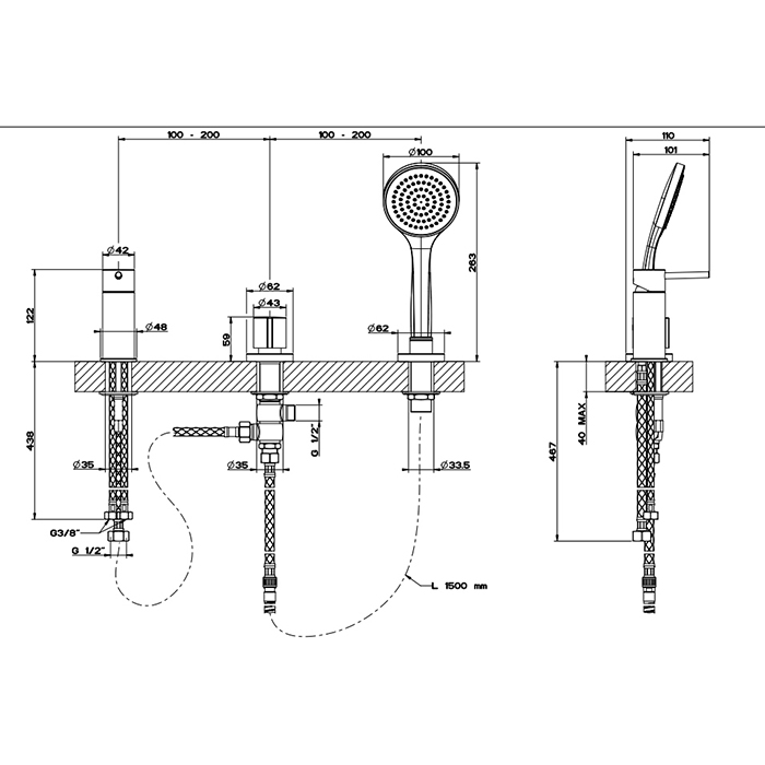 Смеситель Gessi Via tortona 18643#149 для ванны, никель браш