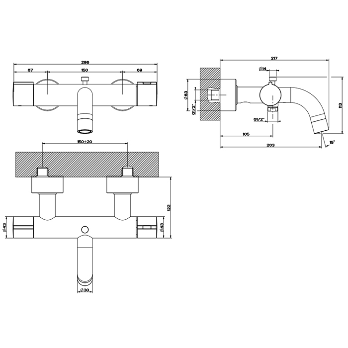 Смеситель Gessi Via tortona 18711#149 для ванны с душем термостат, никель браш