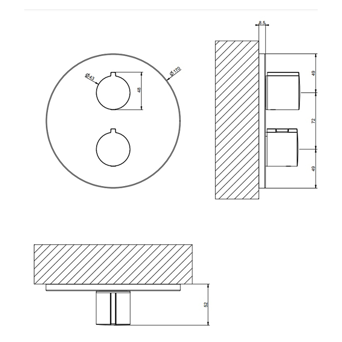 Смеситель Gessi Via tortona 38776#299 для душа термостат, черный матовый