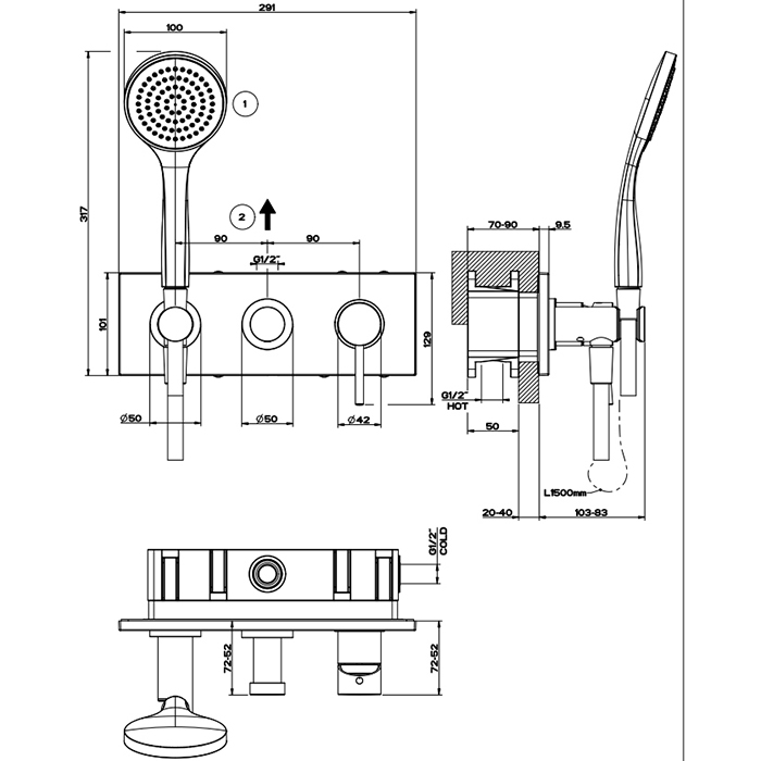 Смеситель Gessi Via tortona 44828#031 для душа с переключателем на 2 потока, хром