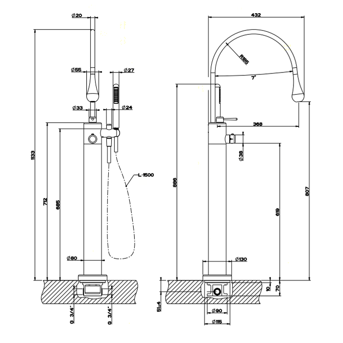 Скрытая часть смесителя Gessi 24997#031 для ванны