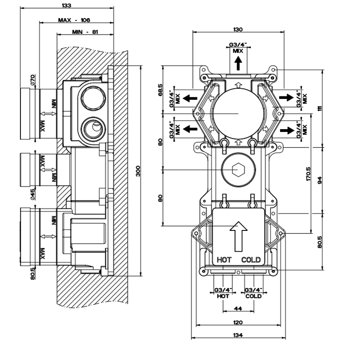 Скрытая часть смесителя Gessi 43111#031, термостат