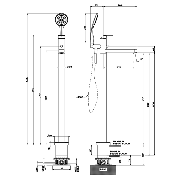 Скрытая часть смесителя Gessi 46189#031 для ванны
