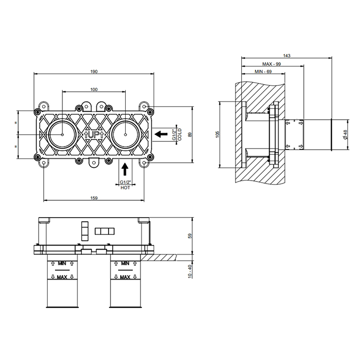 Скрытая часть смесителя Gessi 63397#239, нержавеющая сталь браш
